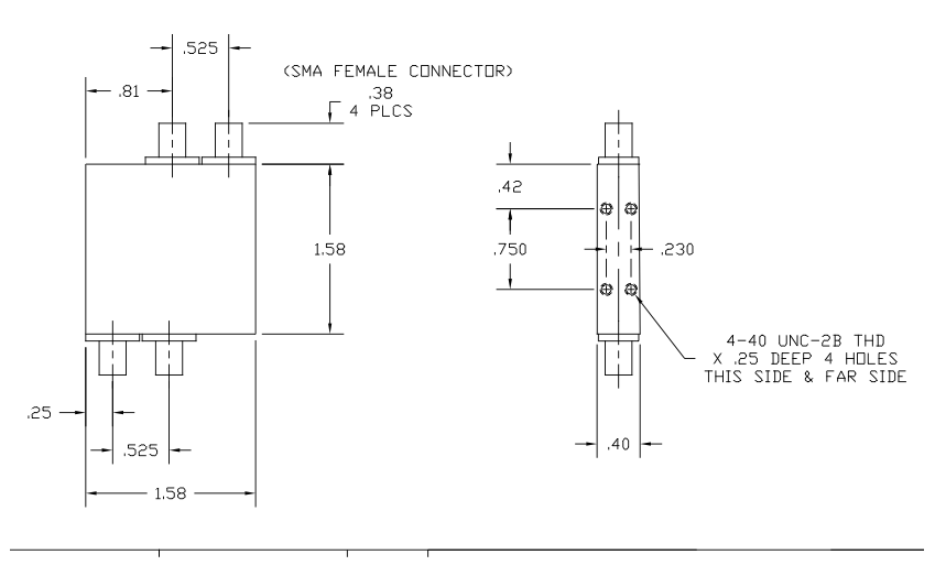 In addition, Model 4070240 offers Input Power Rating of 20 W average and 3 kW peak. The hybrid coupler comes with industry-standard SMA Female Connectors. The compact package measures just 1.58 inches (L) x 1.58 inches (W) x 0.40 inches (H), and weighs only 2.4 ounces. Operating temperature is -54° to 85° C. This coupler is typically available from stock to 30 days, ARO.