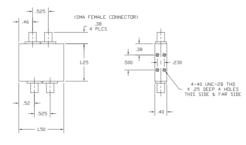 In addition, Model 407125-1535 offers Input Power Rating of 20 W average and 3 kW peak. The hybrid coupler comes with industry-standard SMA Female Connectors. The compact package measures just 1.50 inches (L) x 1.25 inches (W) x 0.40 inches (H), and weighs only 1.5 ounces. Operating temperature is -54° to 85° C. This coupler is typically available from stock to 30 days, ARO.