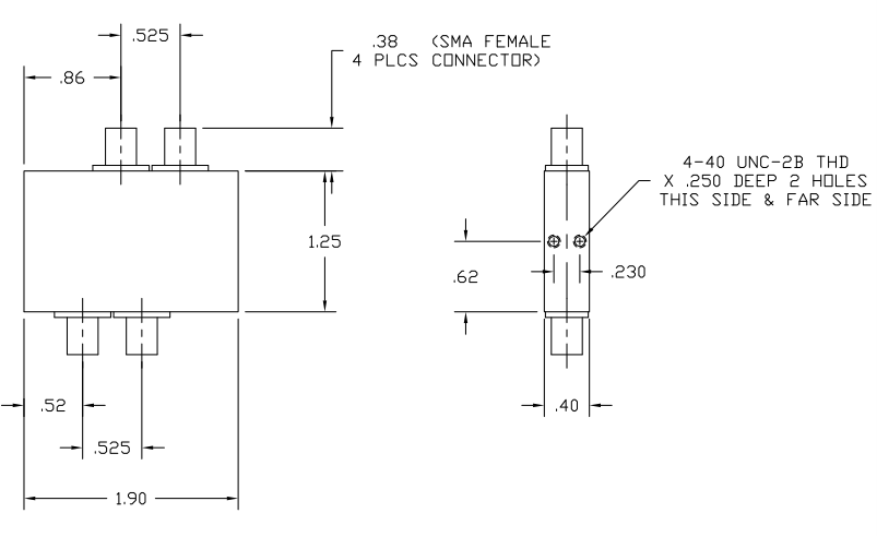 In addition, Model ULTRA4040124 offers Input Power Rating of 20 W average and 3 kW peak. The hybrid coupler comes with industry-standard SMA Female Connectors. This compact package measures just 1.90 inches (L) x 1.25 inches (W) x 0.40 inches (H), and weighs only 1.8 ounces. Operating temperature is -54° to 85° C. This coupler is typically available from stock to 30 days, ARO.