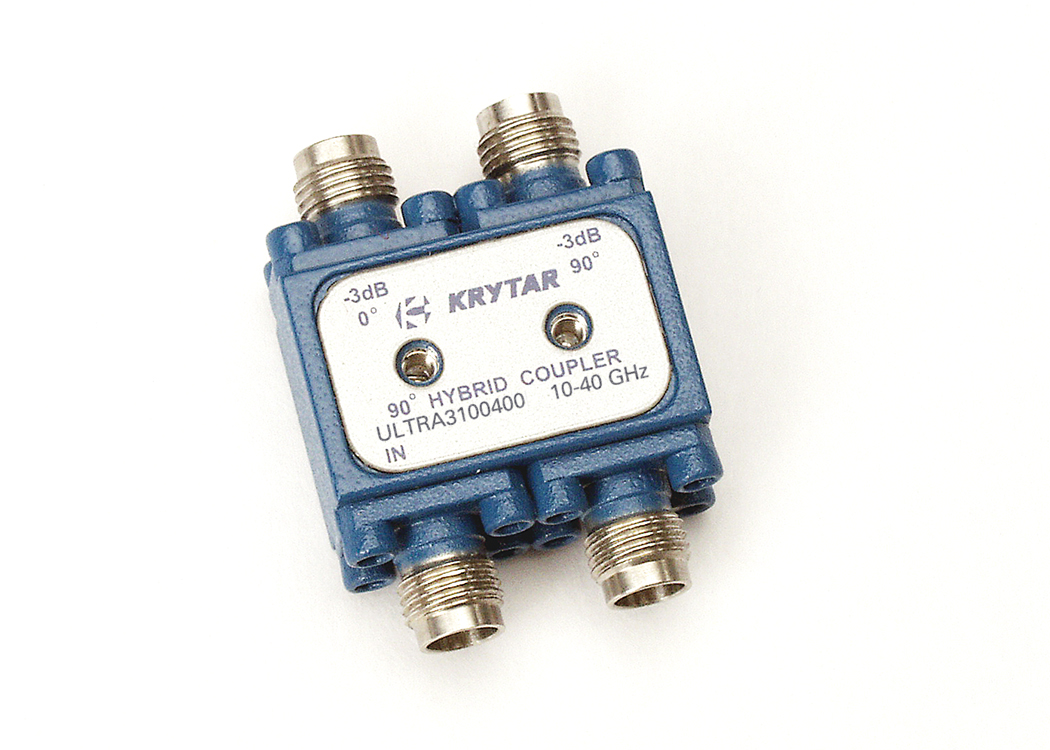 KRYTAR’s new hybrid coupler, Model ULTRA3100400, delivers exceptional versatility from 10.0 to 40.0 GHz (X- thru KA-Bands) with excellent phase and amplitude matching. Typical specifications include 3 dB Coupling; Amplitude Imbalance: ±0.8 dB; Phase Imbalance is ±18 degrees; Isolation is >14 dB; Maximum VSWR: 1.6; and Insertion Loss of <1.5 dB.