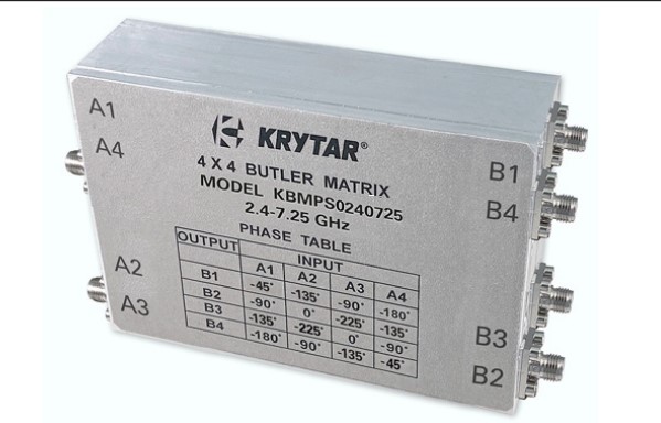 The NEW KRYTAR 4×4 Butler Matrix with Phase Shift family uses KRYTAR’s high-performance 90- and 180-degree Hybrid Couplers providing super phase accuracy, amplitude imbalance, stability and repeatability.